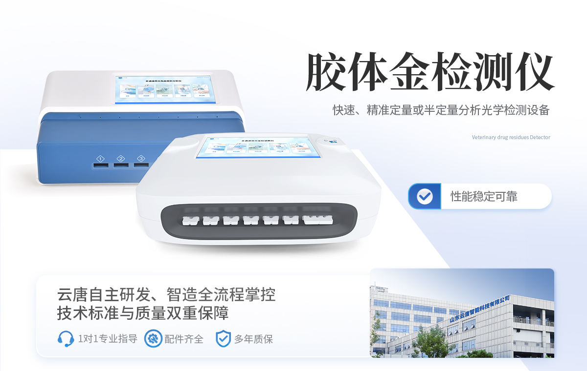 | 1、食品安全: 致病微生物、农兽药残留、生物毒素等快速筛查。 | 2、畜牧兽医: 动物疫病诊断、动物源性安全指标检测。 | 3、环境监测: 水质、土壤特定污染物筛查。 | 4、科研与生物安全: 免疫层析实验定量分析、生物因子检测。 | 5、其他领域: 所有使用胶体金免疫层析试纸条的场景。 |